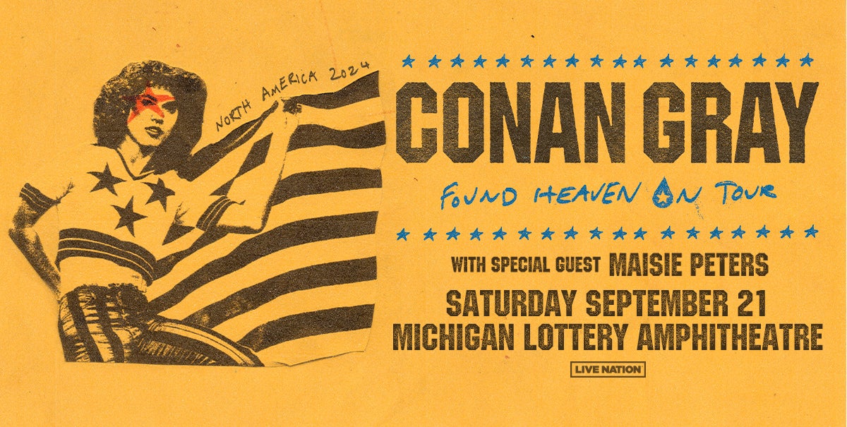 (DETROIT – March 4, 2024) - Today, Conan Gray has announced his worldwide “Found Heaven On Tour” hitting 16 countries around the globe. The tour’s Live Nation produced U.S. and Canada dates includes a performance at Michigan Lottery Amphitheatre on Saturday, September 21 at 7:30 p.m. The North American tour will be supported by singer-songwriter Maisie Peters.