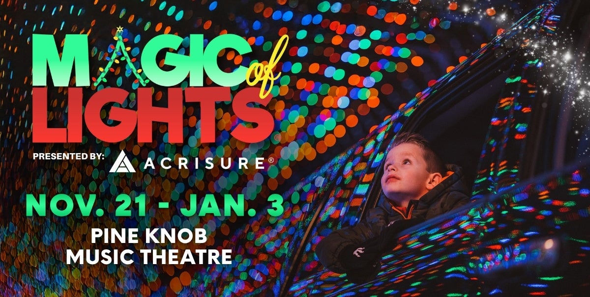The most wonderful time of the year gets even brighter with the triumphant return of Magic of Lights. Pine Knob Music Theatre will once again be transformed into a vibrant winter wonderland featuring a spectacular drive-through light display and enchanting Reindeer Rest Stop. This beloved holiday tradition opens Friday, November 21 and continues through Saturday, January 3. Pine Knob Music Theatre is presented by Proud Partners United Wholesale Mortgage, Trinity Health and Ally.