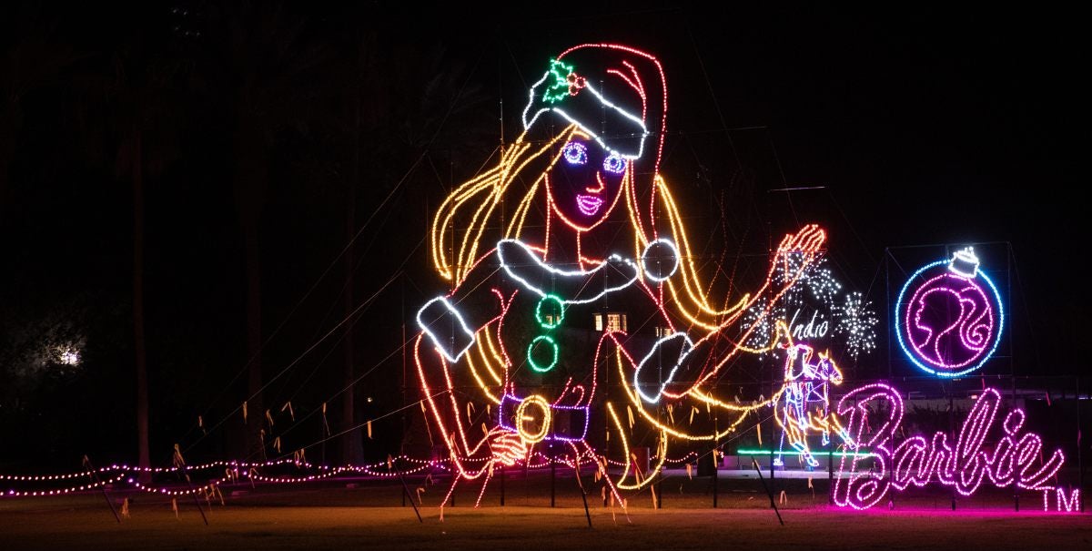 - Magnificent scenes, including the animated Mattel’s Waving Christmas Barbie, soar up to 32 feet tall and stretch several hundred feet in length.