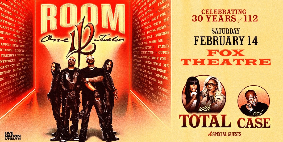 (DETROIT – October 31, 2025) – The legendary, Grammy®-winning R&B quartet 112 performance originally scheduled for November 6 at the Fox Theatre has been rescheduled to Saturday, February 14, 2026. All previously purchased tickets will be honored for the newly rescheduled date. Ticket holders unable to attend the rescheduled date now have 30 days to request a refund at point of purchase. The “Room 112 Tour” will be a series of intimate performances scheduled across the country and joining the group on the road will be acclaimed 90s R&B girl group Total and Grammy®-nominated singer/songwriter and producer Case, serving as the tour’s supporting acts. Comerica Bank is the exclusive presenting partner of the Fox Theatre.