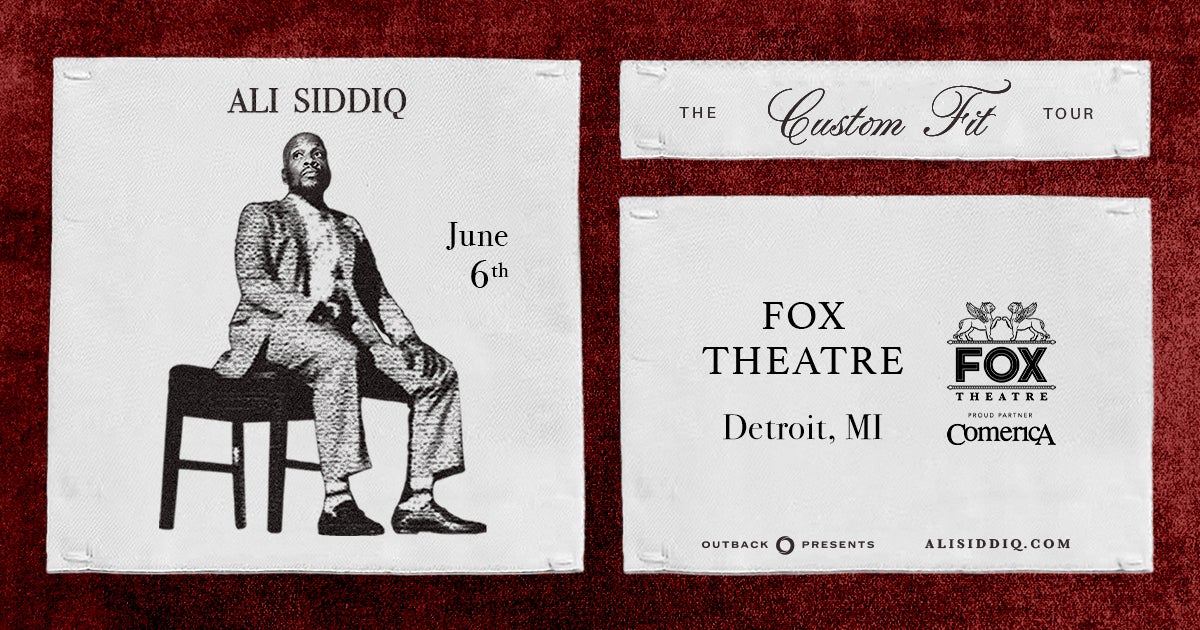 (DETROIT – January 20, 2026) – Comedian Ali Siddiq brings his brand-new Ali Siddiq: Custom Fit Tour to the Fox Theatre on Saturday, June 6 at 7 p.m. The newly announced national tour will visit 26 markets in April, May and June 2026. Fresh off his 2026 NAACP Image Award nomination for his standup special Ali Siddiq: My Two Sons—the only independently produced YouTube special to ever receive a major award nomination—Siddiq will perform brand-new material in theaters across the country, including his first arena show with a stop at the Chesapeake Arena in Baltimore, MD in May. Comerica Bank is the exclusive presenting partner of the Fox Theatre.