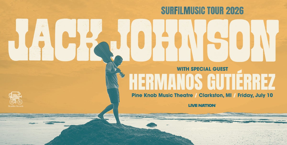 (DETROIT – November 7, 2025) – Multi-platinum recording artist Jack Johnson announces SURFILMUSIC Tour, a 43-date North American tour that will take Johnson and his band coast-to-coast next year. The tour marks Johnson’s long-awaited return to the road since 2022 and will celebrate a new era of music, film, and environmental connection rooted in his chart-topping catalogue, spanning over twenty years. The tour includes a performance at Pine Knob Music Theatre on Friday, July 10 at 7:30 p.m. Pine Knob Music Theatre is presented by Proud Partners United Wholesale Mortgage, Trinity Health and Ally.