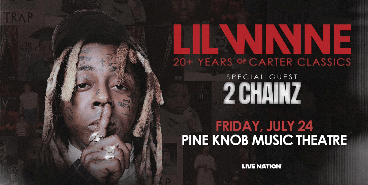 (DETROIT – March 17, 2026) – Due to incredible demand, five-time GRAMMY award–winning rap icon Lil Wayne extends his North American tour celebrating more than 20 years of his groundbreaking Carter album series into 2026. The tour will now include a stop at Pine Knob Music Theatre on Friday, July 24 at 7 p.m. and multi-platinum, GRAMMY Award–winning artist, 2 Chainz, will join as a special guest. Pine Knob Music Theatre is presented by Proud Partners United Wholesale Mortgage, Trinity Health and Ally.