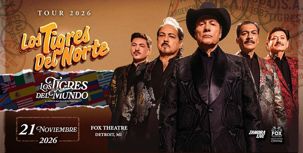 (DETROIT – March 23, 2026) – Following the resounding success of their previous tour, "La Loteria," Los Tigres del Norte embark on a powerful new chapter with a show destined to make history. With more than five decades of an extraordinary career, multiple international awards, and a legacy that has shaped generations, the legendary group return with a tour that celebrates their global impact and deep connection with audiences both inside and outside the United States. The new tour, "Los Tigres del Mundo: El Norte Más Allá de la Frontera," is set to perform at the Fox Theatre on Saturday, November 21 at 8 p.m. Comerica Bank is the exclusive presenting partner of the Fox Theatre.