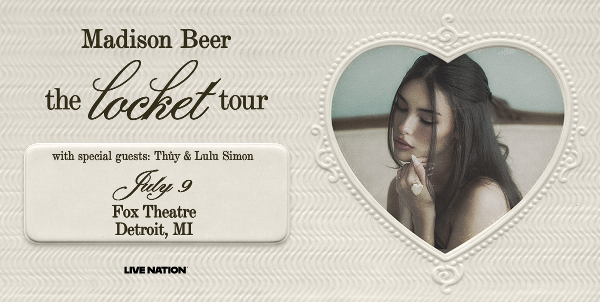 (DETROIT – January 13, 2026) – Two-time GRAMMY-nominated and platinum-selling artist Madison Beer announces the locket tour. With stops throughout North America, Europe, and the UK, this tour marks the first time her forthcoming new album, locket, will be played live for the masses. locket releases this Friday, January 16 and is available for presave now HERE. Madison’s locket tour will be promoted by Live Nation and will perform at the Fox Theatre on Thursday, July 9 at 7:30 p.m. Comerica Bank is the exclusive presenting partner of the Fox Theatre.