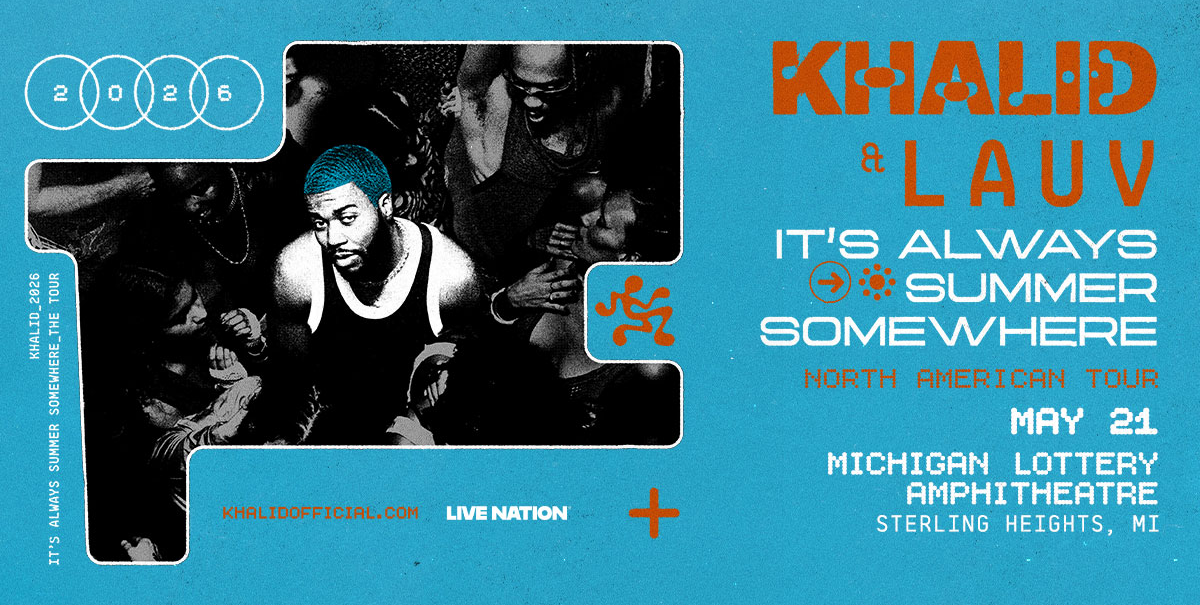 (DETROIT – December 9, 2025) – Today, multi-platinum global superstar Khalid announces his highly anticipated return to the stage with the “It’s Always Summer Somewhere Tour,” a 25-date North American outing that will feature Lauv as a special guest. Khalid will bring his energy to venues across the U.S. and Canada on the Live Nation-produced tour which includes a stop at Michigan Lottery Amphitheatre on Thursday, May 21 at 7:30 p.m.