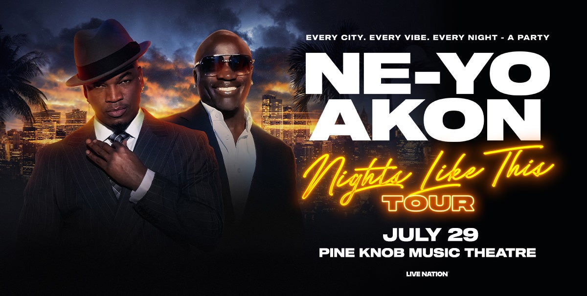 (DETROIT – January 27, 2026) – GRAMMY award-winning hitmaker NE-YO and GRAMMY award-winning multi-platinum recording artist AKON announced their co-headlining Nights Like This global tour. Produced by Live Nation, the massive 57-city tour will visit Pine Knob Music Theatre on Wednesday, July 29 at 8 p.m. Pine Knob Music Theatre is presented by Proud Partners United Wholesale Mortgage, Trinity Health and Ally.