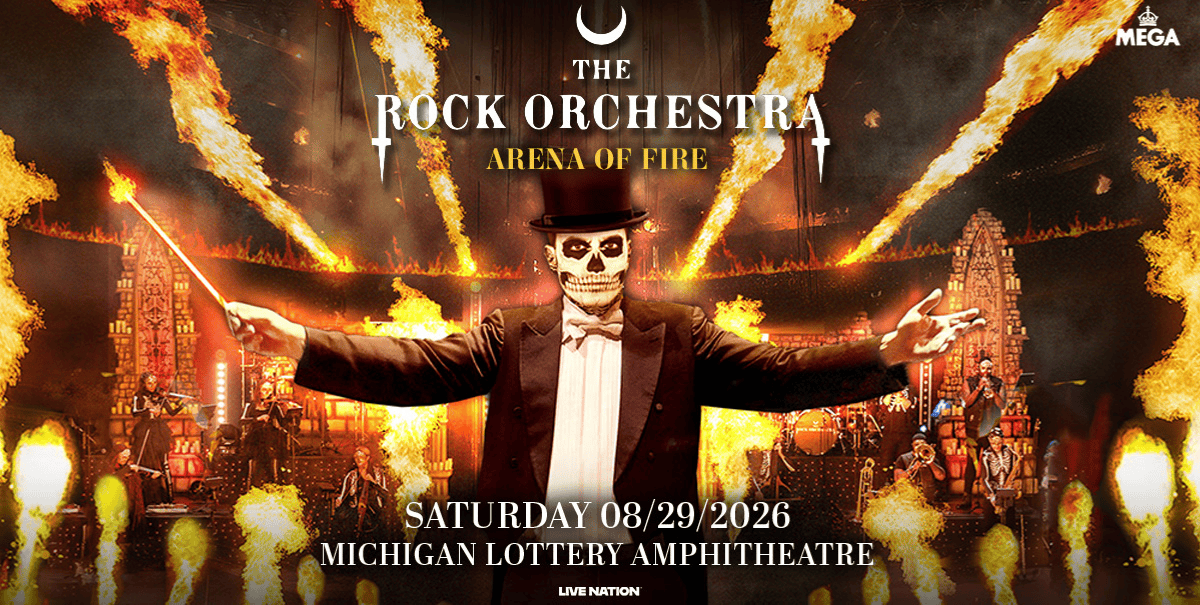 (DETROIT – February 18, 2026) – Igniting the flames of legendary Rock & Metal songs with the help of pyro displays and fire performers, The Rock Orchestra presents its epic new spectacle: Arena of Fire. Prepare for a spellbinding 90-minute concert, as 14 classical musicians breathe beautifully dark energy into iconic songs. The Rock Orchestra: Arena of Fire is set to perform outdoors for the very first time with a date at Michigan Lottery Amphitheatre on Saturday, August 29 at 8 p.m.