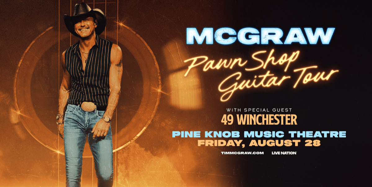 (DETROIT – February 3, 2026) – Three-time GRAMMY® Award-winning superstar Tim McGraw will bring his 2026 North American summer headline tour to Pine Knob Music Theatre on Friday, August 28 at 7 p.m. The local date will feature support from 49 Winchester. The announcement precedes the release of McGraw’s new track, “Pawn Shop Guitar,” due out early next month. Pine Knob Music Theatre is presented by Proud Partners United Wholesale Mortgage, Trinity Health and Ally.Tickets go on sale Friday, February 6 at 10 a.m. at 313Presents.com, LiveNation.com, TimMcGraw.com and Ticketmaster.com. Tickets will be available starting with an Artist Presale on Wednesday, February 4 at 10 a.m. local time.