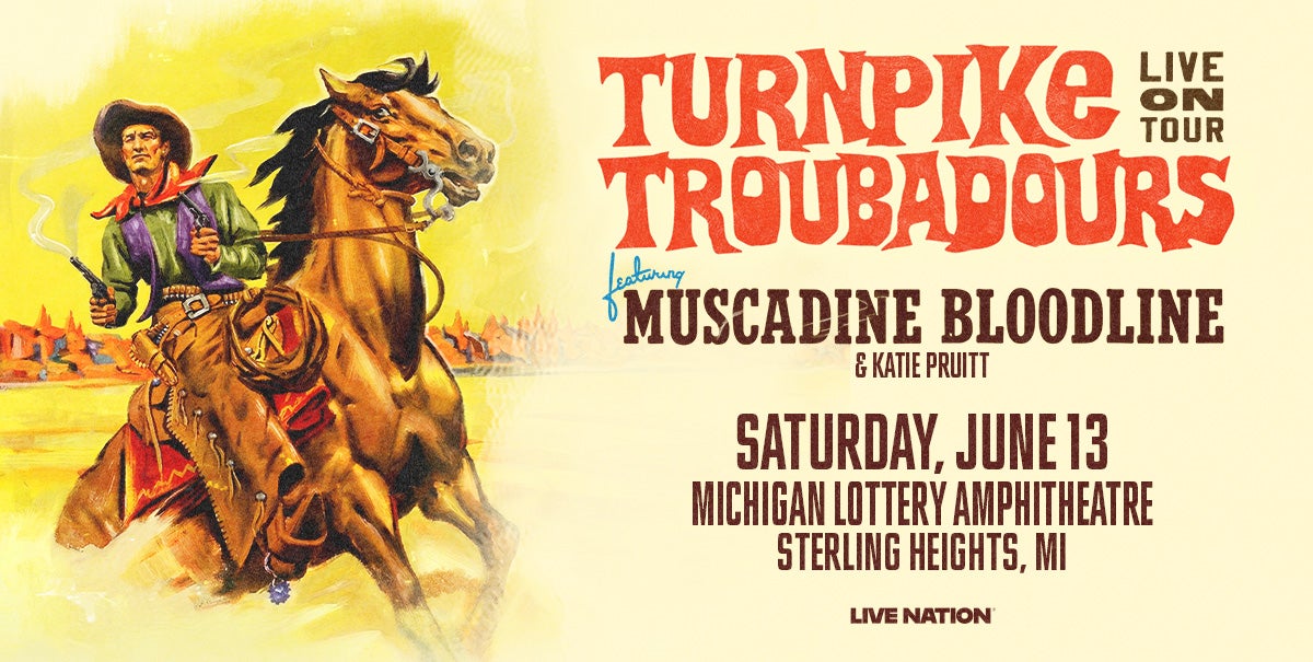 (DETROIT – March 24, 2026) – Turnpike Troubadours with special guests Muscadine Bloodline and Katie Pruitt will perform at Michigan Lottery Amphitheatre on Saturday, June 13 at 7 p.m.